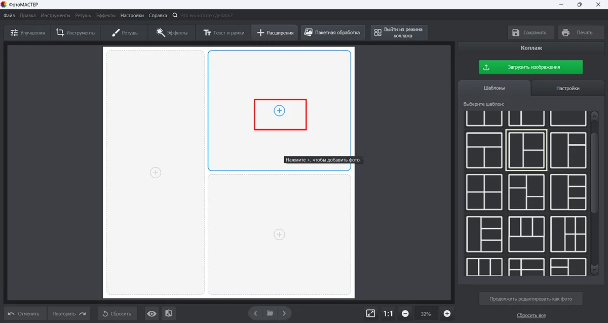 1. Перейдите в раздел Collage.