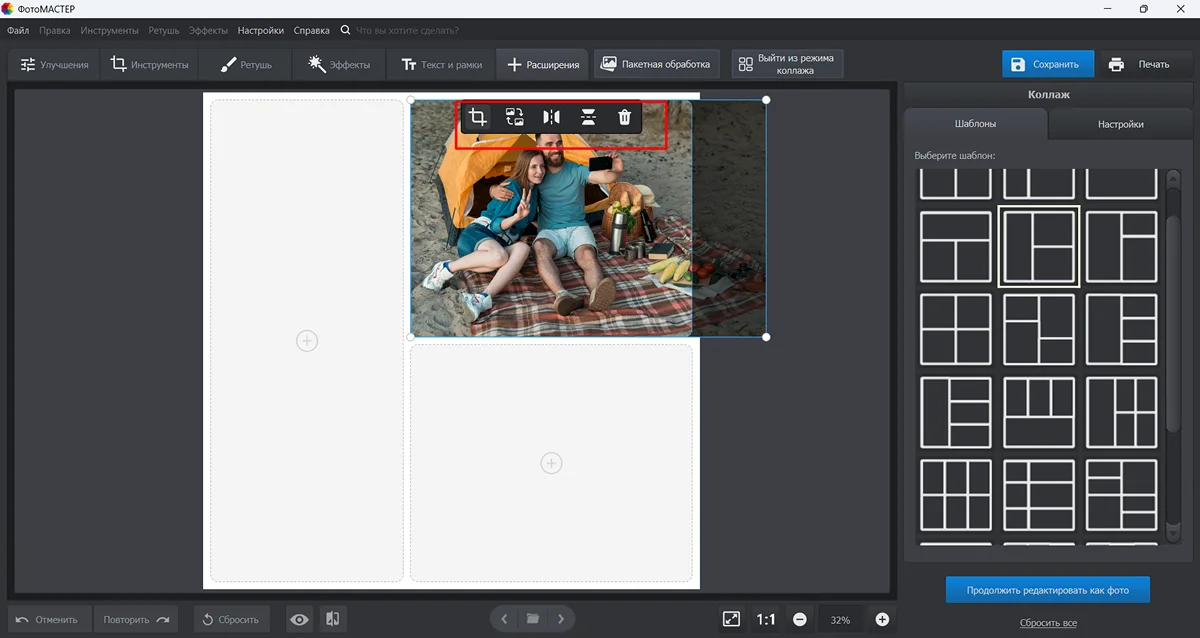 - ФотоМАСТЕР — еще один неплохой вариант для создания коллажей. В нем фотографии можно еще и обработать.