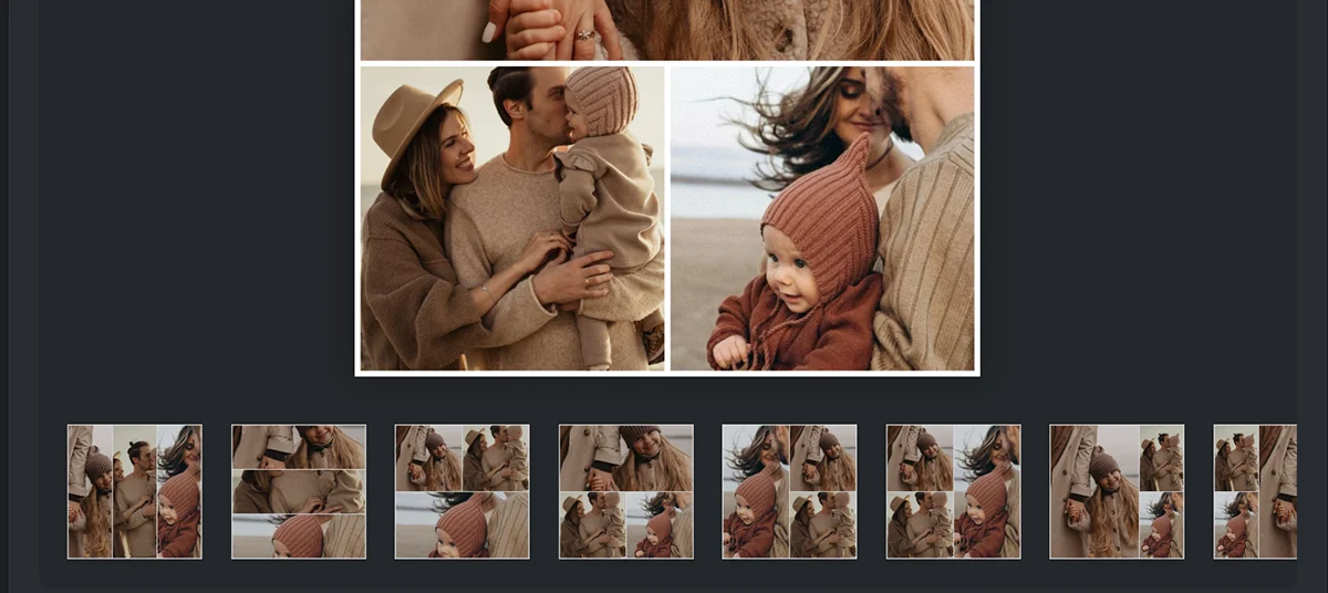 3. Сервис автоматически соберет фотокомпозицию. Ниже вы увидите всевозможные формы сеток. Выберите ту, которая наиболее органично смотрится с вашими снимками.