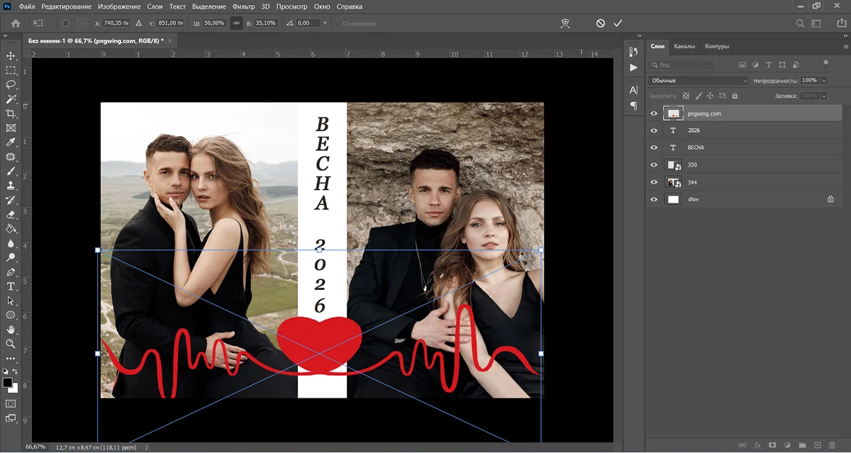 6. Декор вы можете предварительно скачать в PNG с сайта PNGWing, перетащить в программу и трансформировать в соответствии со своей задумкой.