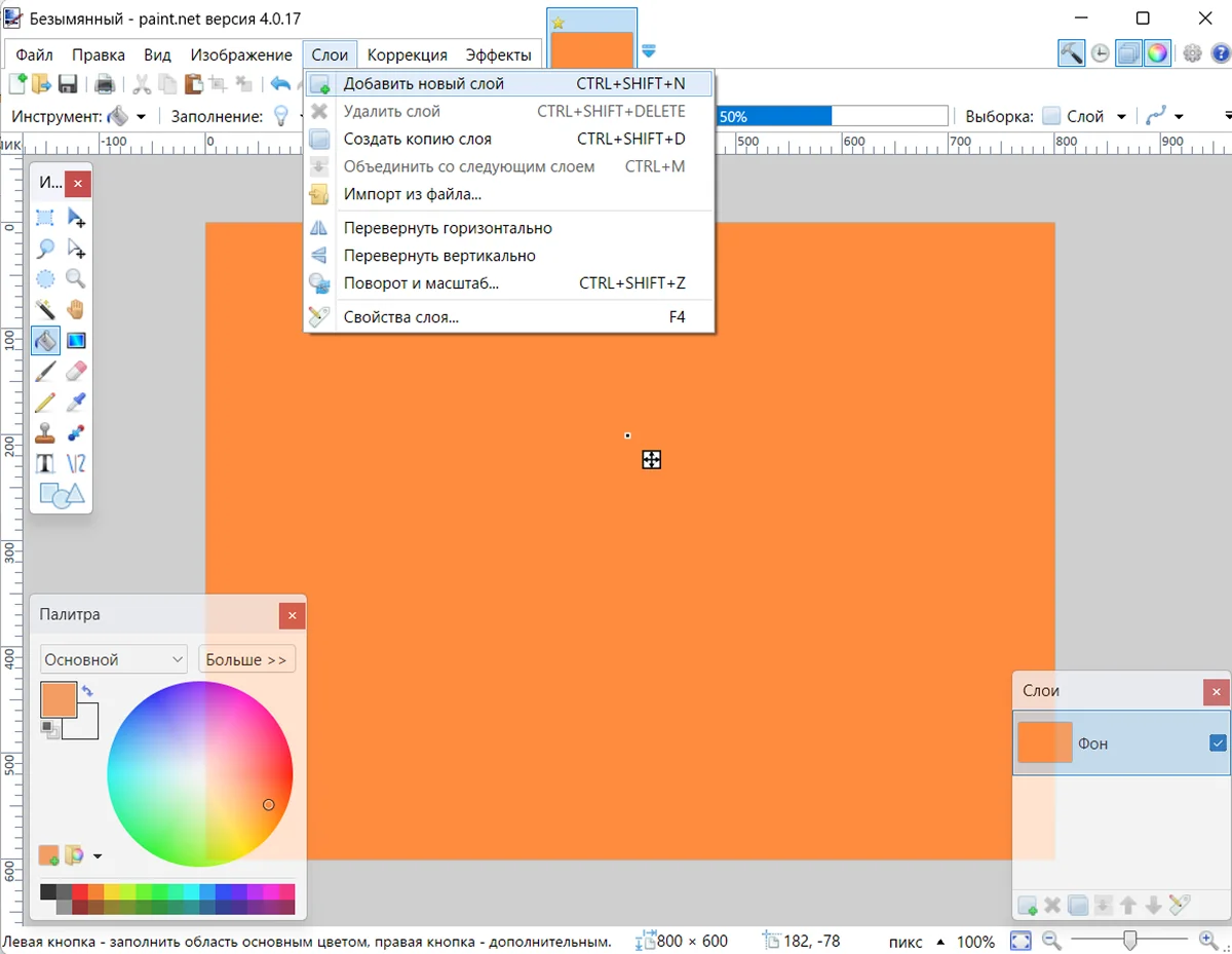3. Пройдите по пути «Слой» → «Добавить новый слой».