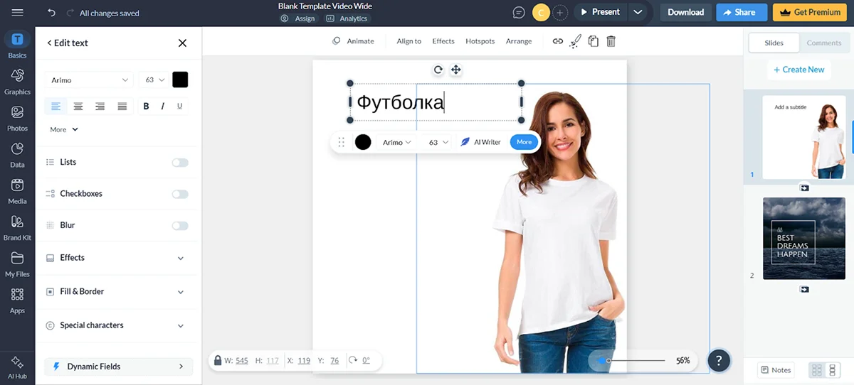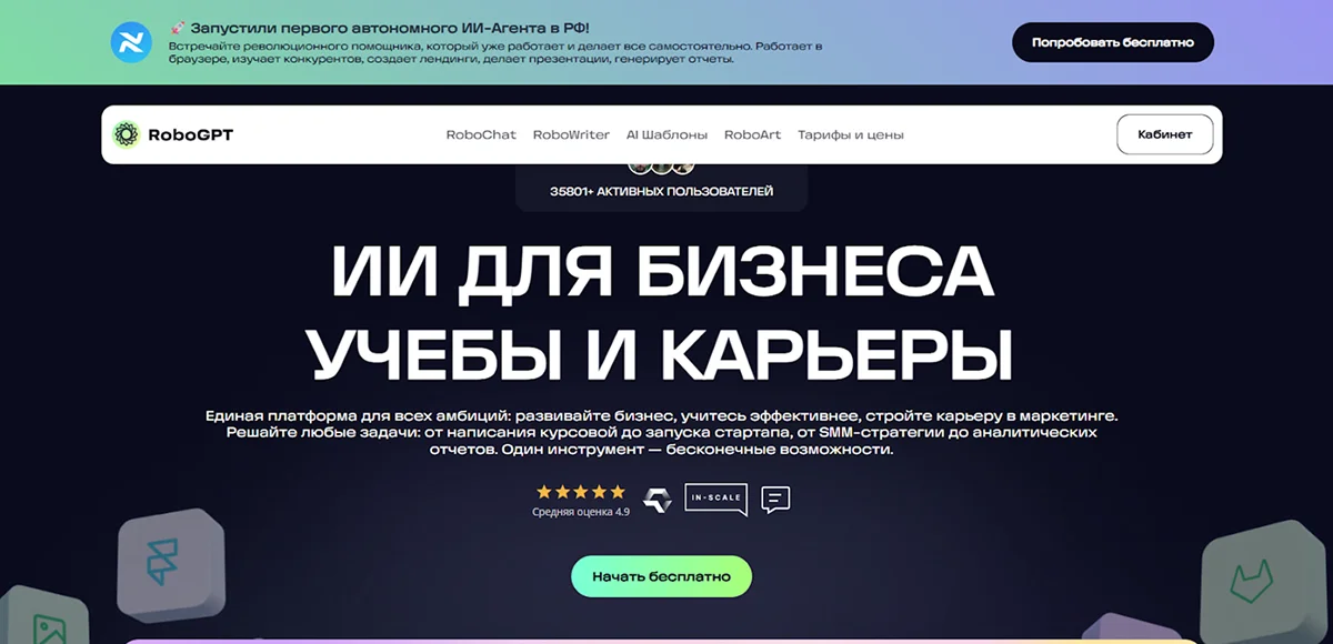 Платформа, на которой также можно создать карточку товара с помощью нейросети. Она не предназначено именно для этого, но в конструкторе возможно собрать проект с нуля, адаптировав загруженный контент под определенную площадку.