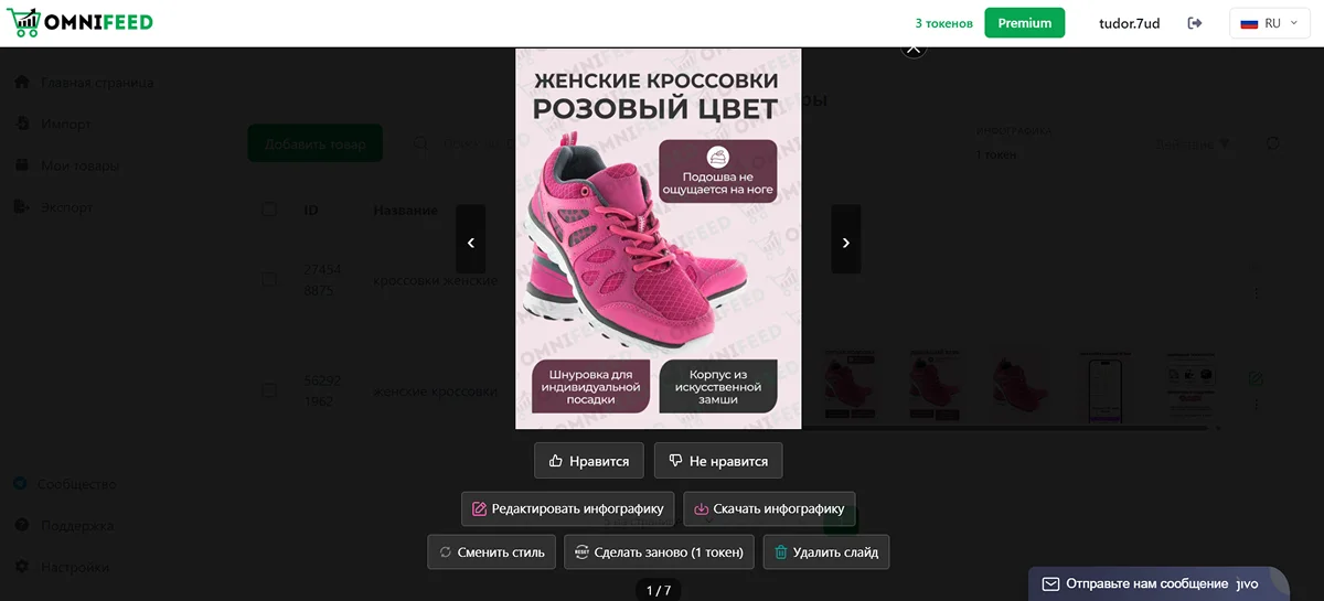 - самостоятельно определяет вещь по предоставленному фото и делает инфографику;